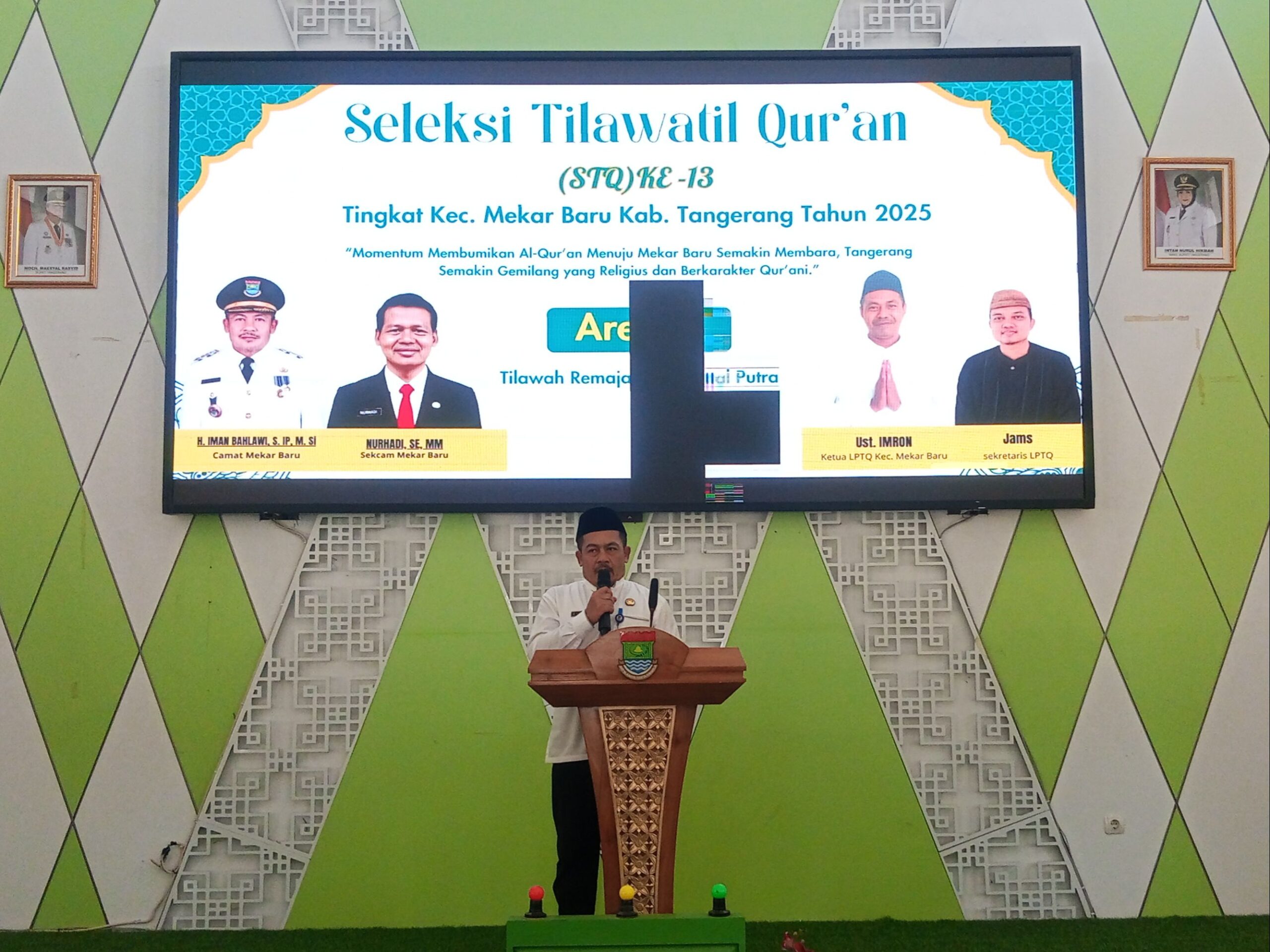 “Saya ucapkan selamat datang kepada seluruh peserta STQ tingkat Kecamatan Mekar Baru. Kegiatan ini bukan sekadar ajang lomba, tetapi juga sarana memperkuat nilai-nilai keagamaan dan membina generasi Qur’ani yang berakhlak mulia,” ujar H. Iman.
