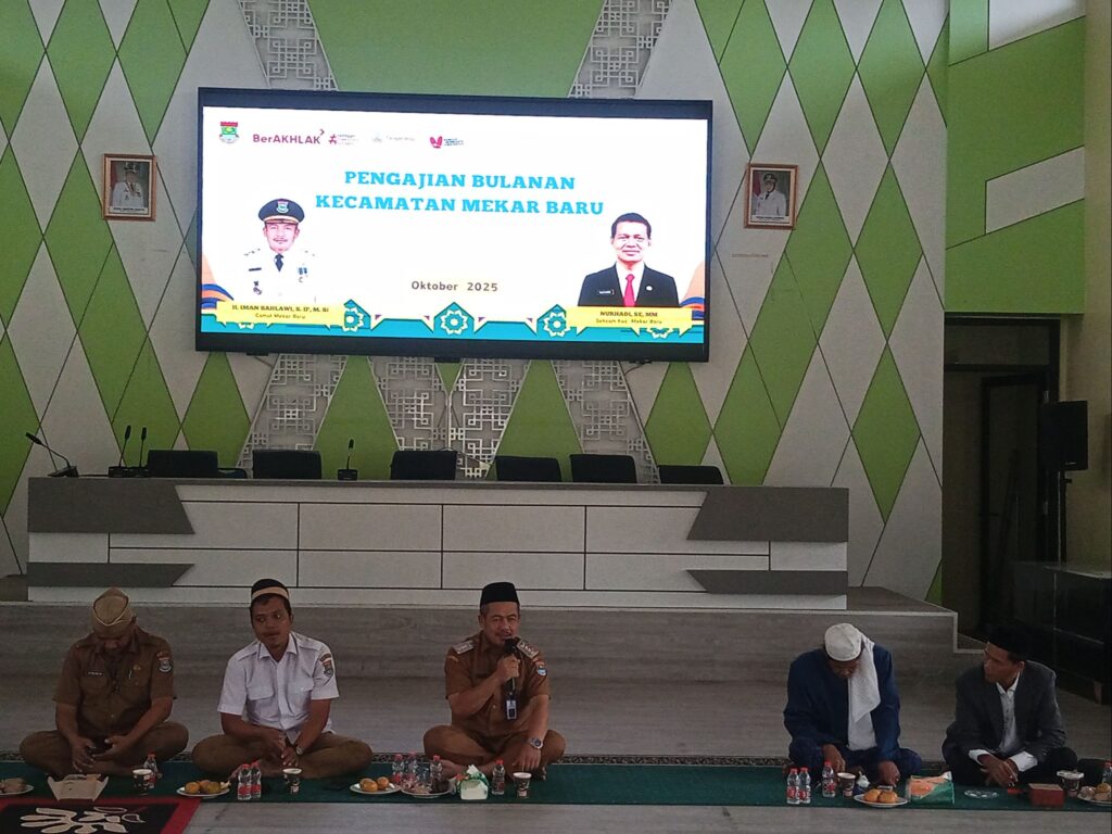 KABUPATEN TANGERANG – Camat Mekar Baru, H. Iman Bahlawi, S.IP., M.Si., bersama Sekretaris Camat, Nurhadi, S.E., M.M., menghadiri kegiatan pengajian rutin bulanan yang diselenggarakan di Gedung Serbaguna (GSG) Kecamatan Mekar Baru, Selasa sore (7/10/2025). Suasana penuh kehangatan dan nuansa religius mewarnai kegiatan pengajian rutin bulanan tersebut.