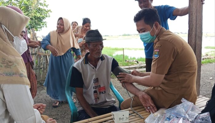 Sinergi dengan Puskesmas Mekar Baru diwujudkan melalui pemberian layanan kesehatan bagi warga terdampak banjir. Selain membuka posko, Kades dan tim medis melakukan home visit untuk membesuk warga yang sakit kronis, seperti Bapak Samudi dan Bapak Sarmin.